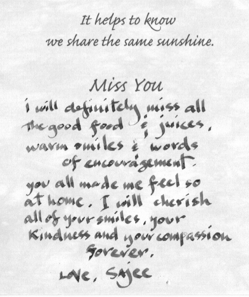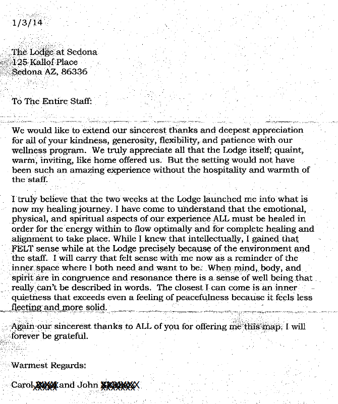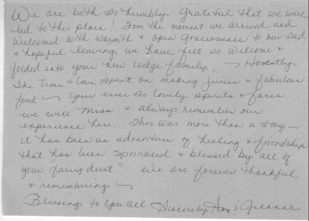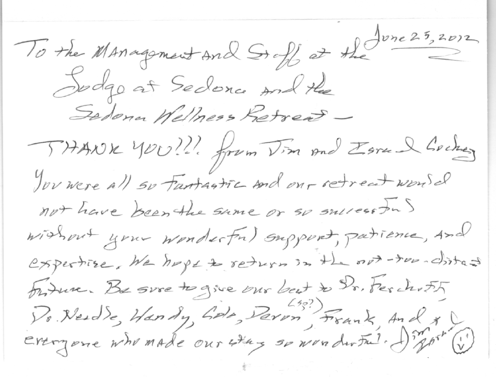 My mother sends her greetings as well. We will forever be grateful. We learned a new, healthier way to live and we have the Sedona Wellness Retreat to thank for it.